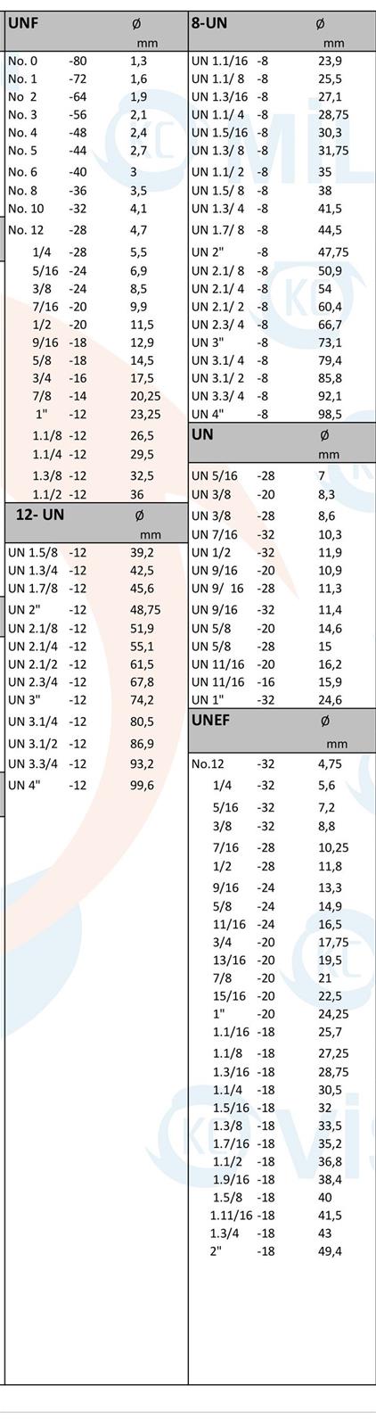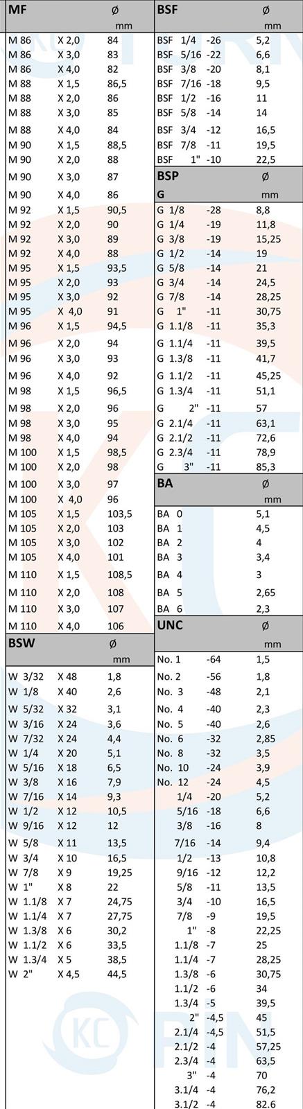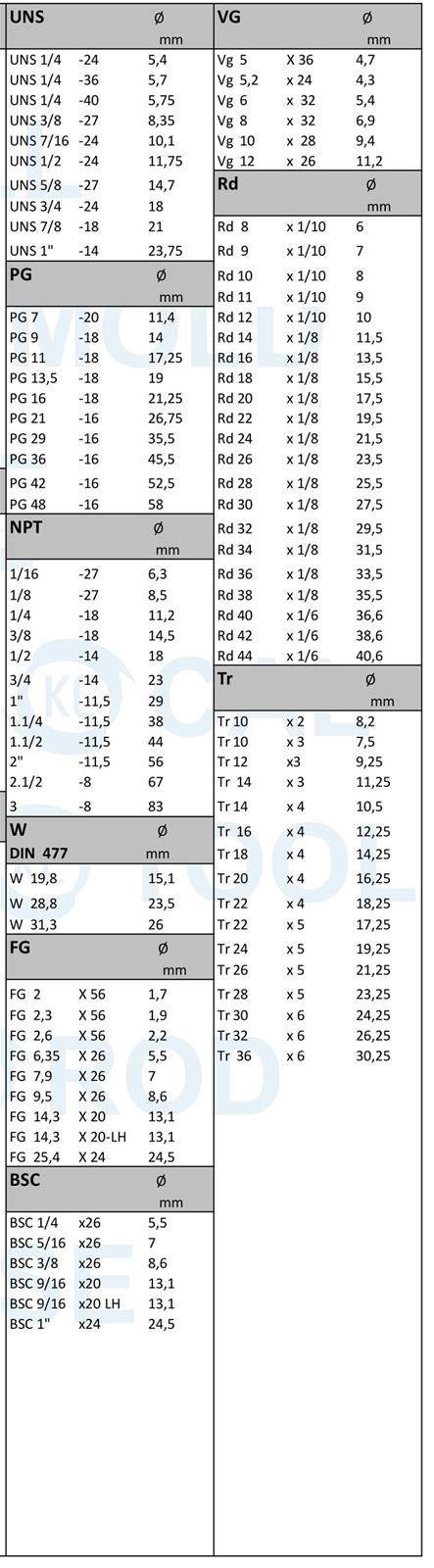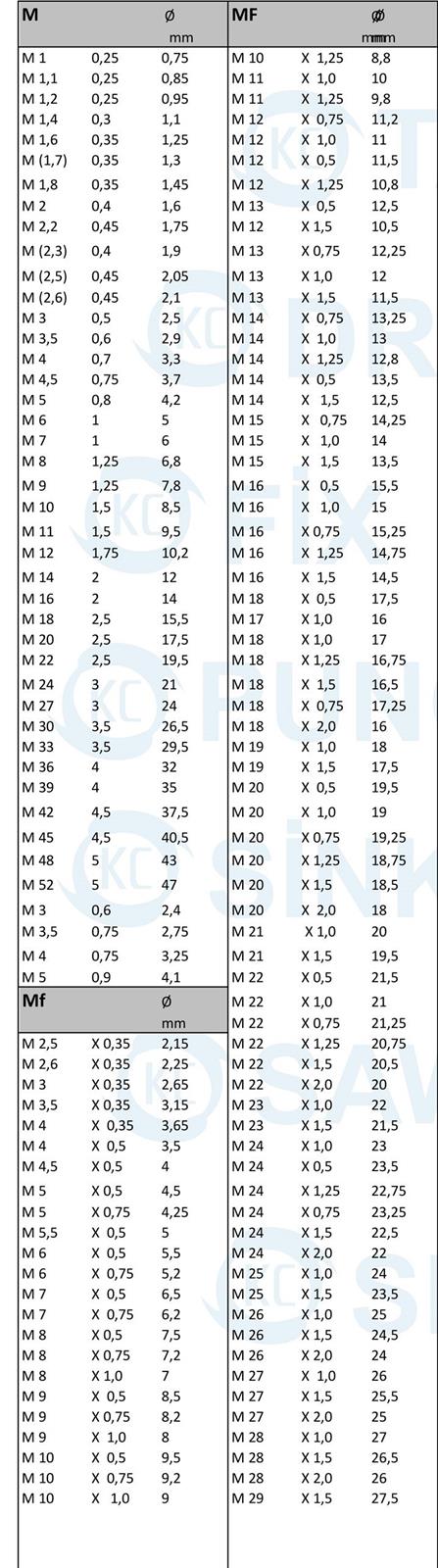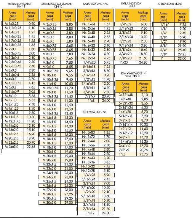 KILAVUZLAR iÇİN KULLANILMASI GEREKEN MATKAP ÇAPLARI